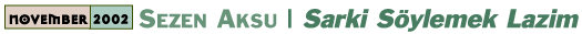 A staunch activist and spokeswoman for the environment and the oppressed, each of Aksu's releases over the last few years have turned huge media events where she often performs with her famous 35-piece Oriental orchestra. This year's Sarki Söylemek Lazim follows on the heels of the stunning year 2000 Deliveren that saw widespread distribution in the US. As one expects by now, Sarki offers a blend of straight-ahead dance-club Pop numbers and songs that liberally borrow from traditional melodies and instrumentation yet inject a distinctly modern element. Like the reinforced silk thread that strings together ethnic necklaces of gorgeous over-sized amber, turquoise and coral beads, Sezen's unique instrument -- broad of range and dynamics, at times vulnerably broken, at others fiercely heroic yet always supremely evocative and hauntingly emotional -- is what clearly puts her Pop music in a class of its own. Hers is a different league of maturity and social consciousness than what tends to be promulgated on Billboard's Top Ten. One is reminded of the Greek Dalaras who uses a similar blend of the traditional and modern to be politically active. Add very sophistcated tune smithing with extended thematic development that accompanies anything Aksu touches these days and it's a shame she hasn't yet become a household word in the US. With 14 tracks averaging 5 minutes each, Sarki is again generously long. Once past the uptempo opening title track with its somewhat relentless drum-machine tattoo, one is immediately surrounded by that special Aksu aroma of voluptous, exotic magic. The dreamy intro of "Istanbul Istanbul Olali" with meditative solo ud against acoustic guitar and the sighing of the ney showcases her trademark lower alto register hovering between fragilty and seduction. Then the lilting beat ushers in the main theme with dense backup chorus and has her scale those famous upper reaches that span the gamut from jubilation to a forboding Valkyrie-like intensity. The bass & drum groove of "Savasma Sevis Benle" shows her equally adept on the dance floor but the electric violin break and spine-tingling undulating chorus overshoot the mark of regular dance fare by a mile. "Su Gibi" is unapologetically romantic. While not understanding the lyrics could misinterpret the literal meaning, the musical message of passion, abandonment and profound depth is unmistakable. |