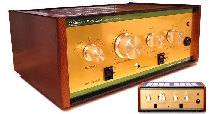The CS-300X has five inputs, a tape monitor and a headphone output. It delivers 15 watts via a quartet of NOS Mullard EL84 pentodes configured for push-pull operation. The driver stage consists of 2 x NOS G 5751 dual triodes which are DC coupled to eliminate noise. The loudspeaker output also drives the headphone port - cans and speakers receive identical signals. The CS-300X has a unique bass boost control that operates via a simple cap/resistor circuit on the negative feedback loop as opposed to a separate, more complex circuit as commonly used. A 15-kOhm resistor prevents any undue sonic influence of this control on the midrange. The little "Life" is self- biasing via a cathode resistor which supposedly reduces noise and precludes any periodic fiddling with a multi meter and screwdriver. Just plug it in and let the good times roll. Various audiophile goodies litter the innards of the Leben, including metalized polypropylene caps with mesh-shielding, caps from Sanyo and Elna, "RMG-F type" resistors with gold-plated leads and custom transformers. Specs are as follows: