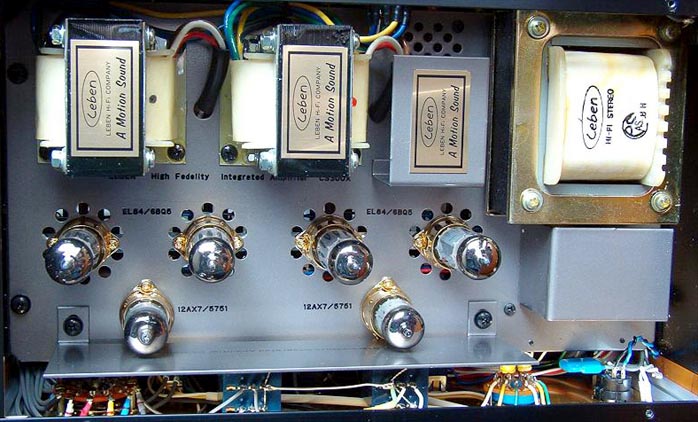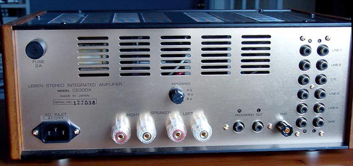 The rear panel features seven pairs of gold-plated RCA connectors, a ground post, a fuse holder, the IEC power inlet, five-way binding posts and an impedance control (4/6/8 Ohms). For you LS3/5A owners, a special 16-ohm tap is available upon request. As with all tube amps, the Leben gets fairly hot and therefore has ventilation perforations on the top and rear panels. The minimalist interior of the CS-300X appears well laid out - no loose solder balls floating around, no rough edges. In fact, build quality is exemplary. For speaker cables, you will want to use bananas or bare wire. The location of the impedance switch interferes with spade-terminated cabling. Other than that quibble, I encountered no problems during the review period. There were no clicks, thumps or other weird behavior. The Leben was also one of the quietest valve amps I've had in house. I only noted the faintest transformer hum and hiss with the volume cranked and my ears less than a foot away from the speakers. As you can | ||||||||||||||
