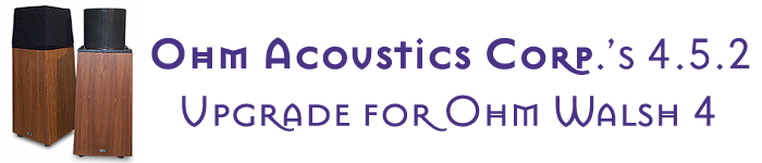 Following my being so impressed with Ohm's tiny Micro Walsh speaker last year, I decided it was time to revisit the larger Ohms. After some haggling with my father-in-law, I reacquired my long-lost Walsh 4 cabinets with an eye toward upgrading the drivers. But to which ones? The big Ohm 300 Mk IIs are too much speaker for either of my current listening rooms. With true 20Hz of bass and lots of it, they overwhelm all but the largest rooms for which they are designed. But what about the driver designed for the Walsh 5 MkII? It's the exact same driver used in the 300 MkII save for a series of three-position frequency-contour switches located on the driver's rear. One 3-position switch each adjusts the level of low bass, mid bass, midrange and treble. In a nutshell, the low bass controls are designed to vary the bass output for larger or smaller rooms. The midbass control is largely to compensate for room boundary and corner effects, the midrange attenuator to accommodate personal tastes and the treble pot to compensate for reflective/absorptive surface conditions. Did I dare dream of shoehorning a pair of Ohm's best drivers into my room? Think of all that bass. Think of all the untapped headroom. In my smaller rooms, that driver would be assured of never breaking a sweat. An e-mail to Ohm's president John Strohbeen, with a description of my room and a request for a suggestion for my best option was answered in short order. Strohbeen was sure that the Walsh 5 Mk II driver was just my ticket. Ohm refers to this option as the "4.5.2 upgrade". Of the 4.5.2 upgrade Ohm's website says, "This upgrade gives you deeper bass, extended dispersion in the treble, over twice the dynamic headroom and controls to match your room and listening tastes. The kit includes: |