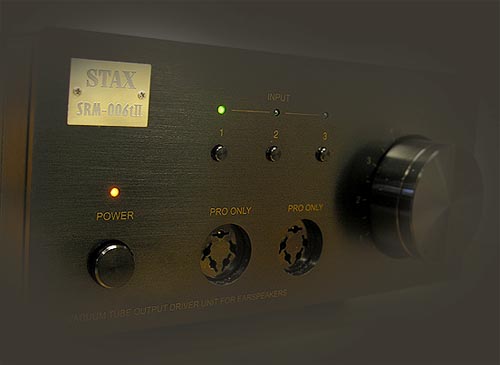 The SRM-006tII is a vacuum tube amplifier described as operating in Class A. It utilizes two Electro Harmonix 6FQ7/ 6CG7 tubes. The SRM-006tII claims a frequency response from DC to 80kHz and provides the previously mentioned energizing voltage of 580 volts into two outputs. The SRM-006tII measures 7.7 inches wide x 4.1 inches high x 14.8 inches deep and weighs 7.5 pounds. The SRM-006tII's front panel features a large dual-concentric volume/balance control, two sets of earspeaker outputs, a power switch and push-button input selectors for up to three sources. Around back are those three inputs, one of them XLR. Additionally, there's a chassis grounding post and a set of RCA through-puts that send the input 1 signal to an optional amplifier should you wish to use the Stax as preamp in a speaker system. An IEC power inlet rounds out the ins and outs. The SRM-006tII has a handsome aesthetic about it and build quality was pretty good but not quite up to the standards of top-shelf components. The stamped cover was noticeably thinner than most and thinner than that of my previous Stax amp. That said, there was nothing flimsy about the rest of the construction. The base was solid and all connections, switches and buttons have a quality feel In terms of break-in, I was warned that the 4040II Signature system would require about 200 hours of playtime before both amp and earspeakers were optimized - though more subtle changes continue for up to a year. I was told that the sound elements are hand-manufactured using thin film membranes stretched between the perforated metal sheets - the stators that carry the aforementioned charge. Though evenly stretched during manufacture, there will be microscopic irregularities. Playing music causes the thin film to stretch out evenly throughout the vibrating surface. |