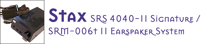 Some time around 1985, I made what to others around me looked like one of the most unbelievable of purchases. I bought the Stax Lambda Pro earspeaker system. $800 as I recall was the price of that system at the time. It seemed like an extravagant acquisition even by my standards. As it turned out, it was one of the best purchases ever. I was single and an apartment dweller. Being a good neighbor but late-nighter, I used the crap out of that system. I adored it. So detailed, so airy. So real sounding. In those days, the magazines made it out to be perhaps the best sound attainable by the average Joe. Better than any affordable speaker. I'll never forget the night I was sitting on my sofa positioned in front of a big sliding glass door. It was opened to the outside at the time. I was listening to Pink Floyd's The Wall. I don't remember the exact cut but I heard a sinister voice come from behind me outside the sliding door. It sounded incredibly real. It was very late. And it startled the beejeezus out of me. My heart still begins to race when I think about it. As I said, those cans could sound incredibly real. Also notice that I didn't say how the voice came from within my head. It was clearly outside my room. Cool trick from headphones - er, earspeakers as Stax insists on calling them. I used that Stax system for years until around 1994 when I gave a listen to the Sennheiser HD580, a set of cans that was getting a ton of positive press. Well, that was it for my Stax Lambda Pros. There was no going back to them. Sure, they were still the most fatigue-free system I'd never heard - and the most comfortable too. Smooth and uncolored? Still the king. But the Sennheisers were exciting to listen to. They had bass power the Lambda Pros only hinted at. They also had a more forward sound that suited most of my music in a way that the Stax system didn't. In short order, I sold the Stax system to my brother-in-law who still owns and uses it. At something around 20 years old, it works perfectly and is in great shape. This testifies to how well built and designed Stax products are. So it was with a deep sense of both curiosity and nostalgia that I set out to obtain the SRS 4040II Signature system for review. In most respects, it looks very much like my old Lambda Pros. But that's where any resemblance ends completely. |