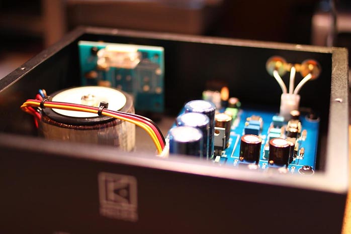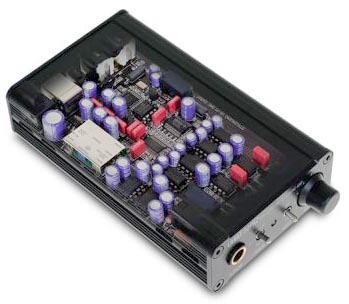 An Internet sensation of sorts, the Keces is a buzz on eBay and certain audio forums. Beginning my trek here, I quickly found the Keces to be rewarding and better than it deserved to be for $250 - an excellent deal. The Keces comes with a Burr-Brown PCM2702 DAC chip with National Semiconductor LME49710 op amps. Its clear blue acrylic top plate reveals all the glowing fun inside while a sparse piano black façade is joined round back by a power on/off switch, USB input, two RCA outs and a power IEC inlet.