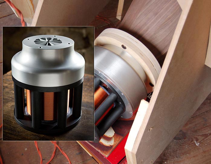 In brief, we listened to the main floor systems during our visit which included a pair of Oswald's Mill Audio (OMA) speakers incorporating the Cogent field coil compression drivers; the DS 1428 with a 300Hz conical midrange horn and a DS 1448 with a 100Hz conical Horn both incorporating a cast aluminum throat from Bill Woods and his Acoustic Horn Company and Oswald's Mill solid walnut horns also designed by Bill Woods. From Jonathan, "the Cogent drivers and OMA horns were part of a larger 4-way system OMA is doing, with a horn-loaded sub and a custom ribbon actively amplified with our own triode electronics. You only heard the midrange components of that system this weekend." |